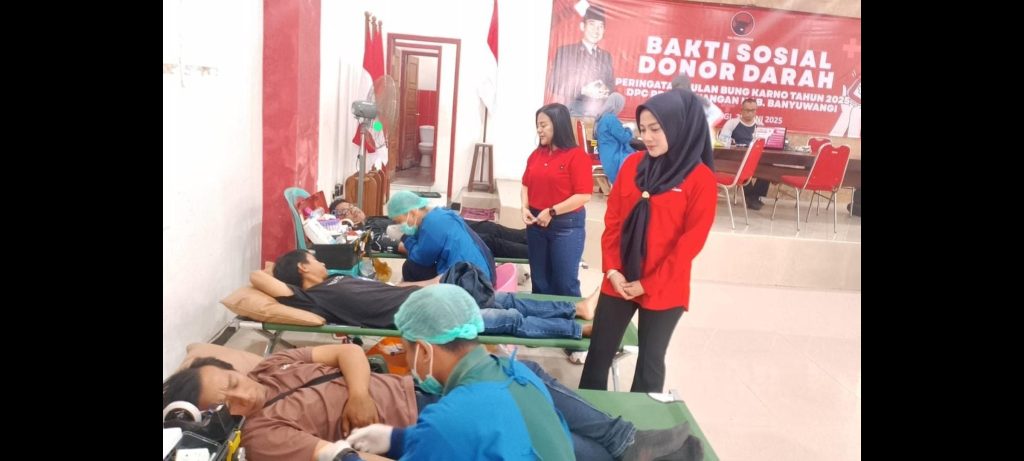 Banyuwangi – Sebagai rangkaian kegiatan peringatan Bulan Bung Karno Juni 2025, DPC PDI Perjuangan Banyuwangi menggelar bakti sosial donor darah bertempat di Kantor DPC PDI Perjuangan Jalan Jaksa Agung Suprapto, Jum’at (20/06/25).