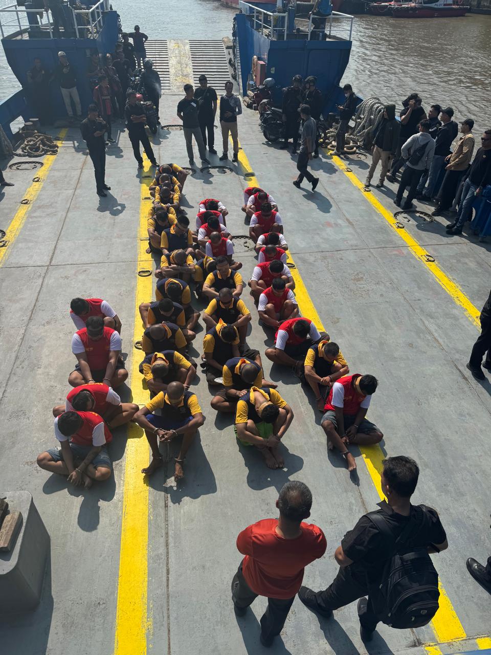 Lampung – Sebanyak 37 warga binaan high risk Jawa Timur tiba di Lapas Super Maksimum Security Pulau Nusakambangana, Minggu (28/7). “ mereka adalah warga binaan yang berdasarkan asesement, penyidikan dan penyelidikan termasuk dalam kategori berisiko tinggi, baik dalam mengganggu keamanan dan berpotensi merusak program pembinaan bagi warga binaan lainnya ,” ungkap Kadiono, Kepala Kantor Direkrorat Jenderal Pemasyarakatan Jawa Timur.