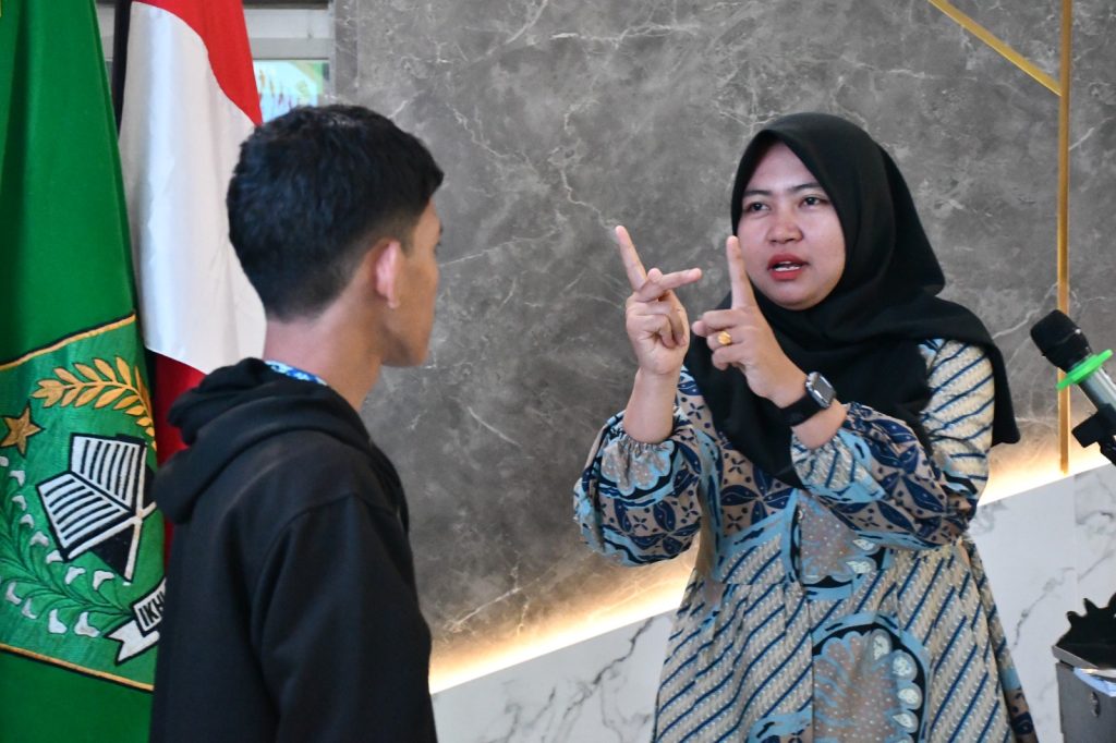 Ia menambahkan, kehadiran juru bahasa isyarat adalah wujud nyata komitmen Kemenag Sumsel dalam memastikan akses informasi yang merata. Narasumber utama, Septiananda Rahmadiani, ahli bahasa isyarat, turut memberikan materi mengenai pentingnya komunikasi yang inklusif.
