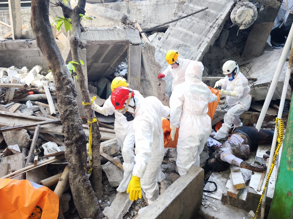 “Tim SAR gabungan terlebih dahulu menghancurkan reruntuhan dinding beton, kemudian memotong besi tulangan di dalamnya agar bisa mengeluarkan empat jenazah korban yang terhimpit,” kata Yudhi.