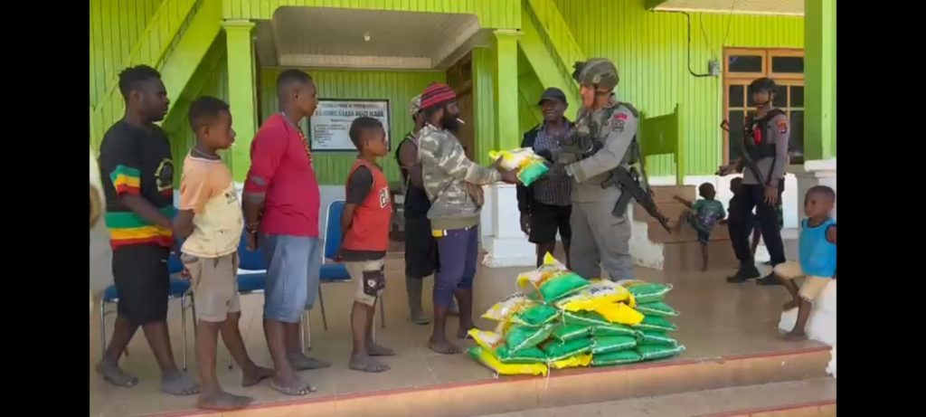 Dalam kegiatan tersebut, personel Satgas dan Polres Paniai membagikan beras dan berbagai bahan pangan kepada anak-anak maupun warga setempat. Aksi sosial ini menjadi bentuk kepedulian Polri terhadap kesejahteraan masyarakat sekaligus mempererat hubungan antara aparat keamanan dan warga Distrik Bibida.