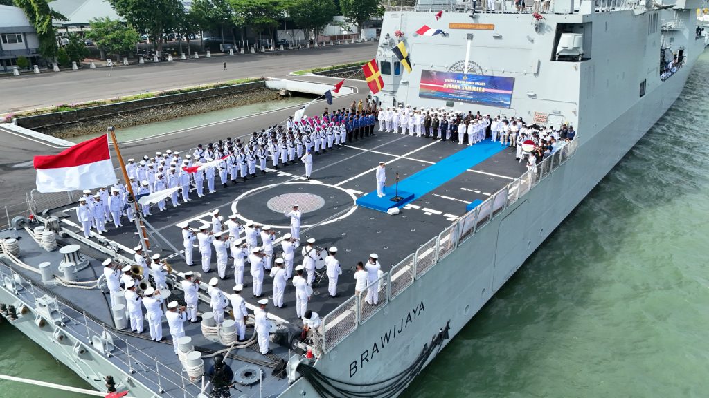 SURABAYA – Dalam rangka memperingati Hari Dharma Samudra Tahun 2026, Komandan Komando Daerah TNI AL (Dankodaeral) V Laksda TNI Ali Triswanto, S.E., M.Si., memimpin Upacara Tabur Bunga di laut yang berlangsung khidmat di atas geladak KRI Brawijaya-320, di Dermaga Madura Koarmada II, Ujung, Surabaya. Kamis (15/01/2026)