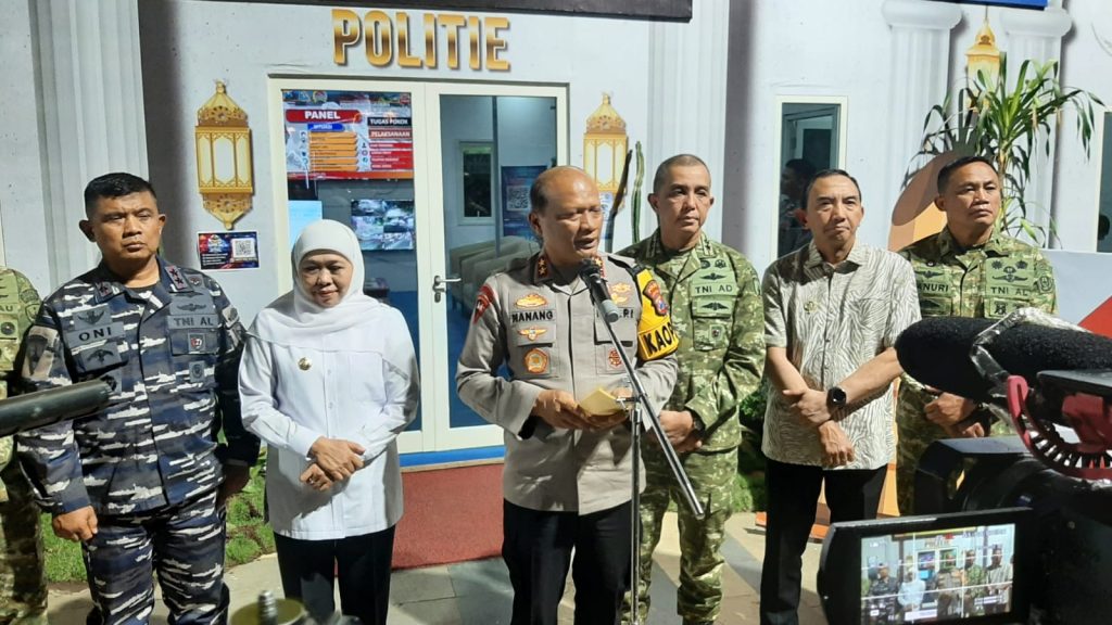 SURABAYA – Kapolda Jawa Timur Irjen Pol Nanang Avianto bersama Forkopimda melakukan pengecekan Pos Pengamanan Operasi Ketupat Semeru 2026 di Taman Apsari, Surabaya, Jumat 20 Maret 2016 malam. I