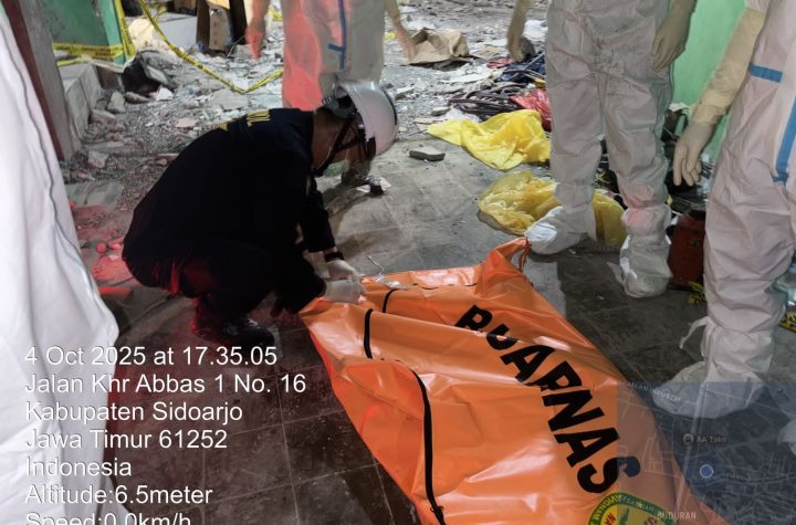 Sidoarjo – Upaya pencarian korban runtuhnya bangunan di Pondok Pesantren Al Khoziny, kabupaten Sidoarjo,...
